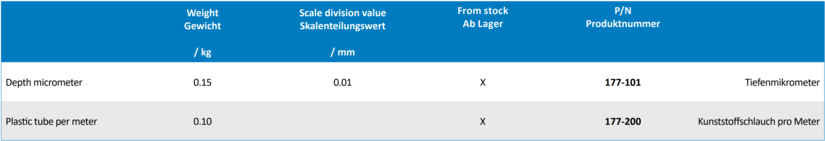 - 1 Mikrometer / Tiefenmessschraube (als Zubehör lieferbar)