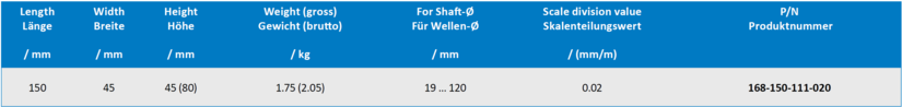 - Standard version with prismatic measuring base of hardened steel, finely rectified, 150 mm long, without magnets, according to Standards DIN877 + DIN2276/1