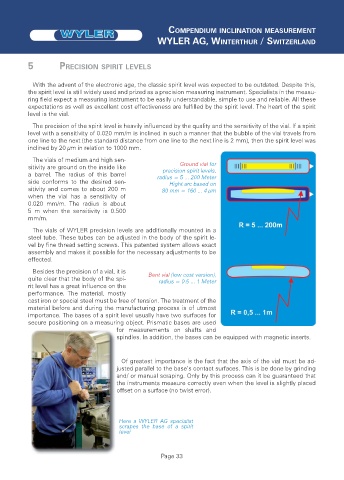 the spirit level is still widely used and prized as a precision measuring instrument. Specialists in the measu-