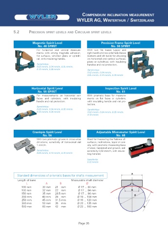 5.2 PRECISION SPIRIT LEVELS AND CIRCULAR SPIRIT LEVELS