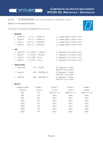 6.4.9 “STANDARDS“ FOR THE FLATNESS OF SURFACE PLATES